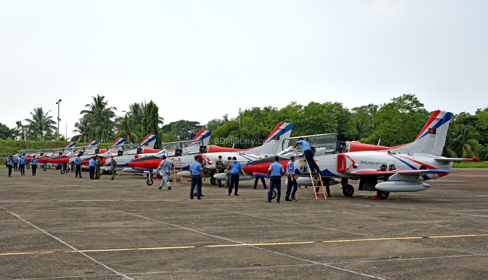 Reading Time: 2 minutes Headquarters & Command Air Chief Marshal – Chief of Air Staff BAF HQ: Dhaka Total Bases Covered: 6 Principal Roles: Air defence, transport, training, and helicopter operations. BAF Base Paharkanchanpur Coordinates: 24°15’19″N, 090°09’14″EElevation: 75 ftType: HeliportPermanent Units: NoneRemarks: No permanently based aircraft. Bogra (VGBG) Coordinates: 24°51’60″N, 089°18’59″EElevation: 68 ftRunway: 12/30 Unit(s): Flying Instructor School (FIS) – Aircraft: PT-6 (CJ-6) Role: Basic flying instruction Notes: Uses aircraft from the Air Force Academy at Jessore. Chittagong / M.A. Hannan Intl (VGEG) — BAF Base Zahurul Haque Coordinates: 22°14’59″N, 091°48’48″EElevation: 12 ftRunway: 05/23 Squadrons: SquadronAircraftSquadron NameNotes1 SqnMi-17, Mi-171, Bell 212, AW139The PioneersTransport / helicopter operations3 SqnAn-32A, An-32BUnicornsTactical transport21 SqnJ-10CE, Yak-130The AvengersFighter / Advanced jet training / light attack25 SqnF-7MB, FT-7B, (L-39ZA wfu)TrendsettersFighter / interceptor105 Sqn (AJTU)Yak-130TridentAdvanced Jet Training Unit Remarks: Yak-130 aircraft delivered in 2015/16 used for advanced jet training. Major training and transport hub. Cox’s Bazar (VGCB) Coordinates: