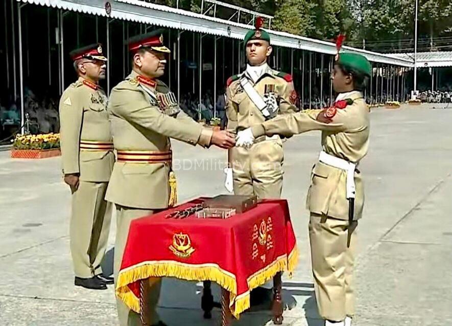 Lady Cadet Jannatul Mawa of the Bangladesh Army has successfully completed her training at the Pakistan Military Academy (PMA) and received the prestigious Commandant’s Overseas Medal for outstanding performance and leadership during her course.